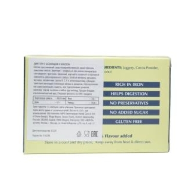 | Состав | Тростниковый сахар нерафинированный, какао порошок, кокосовые хлопья (Jaggery, Cocoa Powder, Coconut |