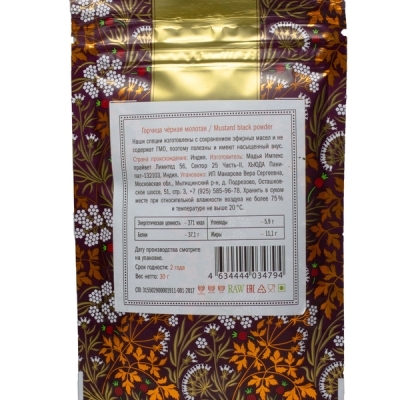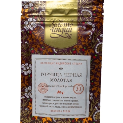 Полезные свойства : улучшает обмен веществ, пищеварение и кровообращение; улучшает иммунитет; богат витаминами группы B, фосфором, цинком, натрием. Горчица эффективна для профилактики простудных заболеваний. Все специи Золото Индии - 100 % натуральные, без примесей и добавок.