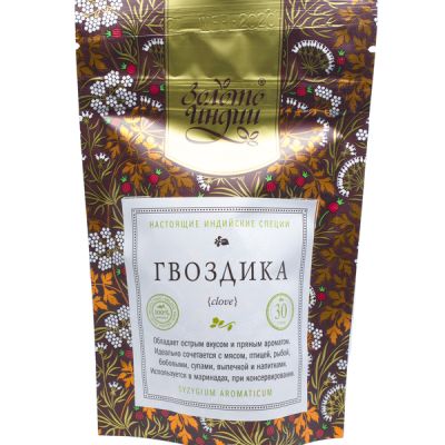 Способ использования : В основном специя используется в процессе консервирования фруктов, грибов, овощей, ягод, тем не менее замечательно сочетается с чесноком, луком, черным и душистым перцем, с корицей и прочими пряностями. Также она придает приятный вкус овощным супам и бульонам, хорошо сочетается с мясом, рыбой, грибами и тушеными овощами. Рекомендуется учитывать рецептуру ввиду насыщенности аромата пряности. Гвоздика прекрасно гармонирует с перцем черным, мускатным орехом и пр.
