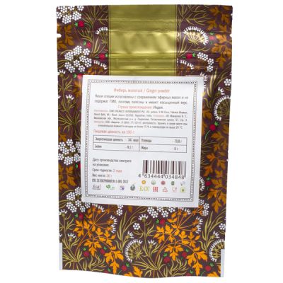 Способ использования : пряность с насыщенным ароматом и жгучим вкусом широко используется в согревающих алкогольных и безалкогольных напитках, при изготовлении кондитерских изделий (мармелад, зефир, цукаты). Имбирь прекрасно работает в сладкой и пресной выпечке, замечательно дополняет все виды мяса. Имбирь можно использовать при приготовлении овощных и мясных бульонов, рагу и каш.
