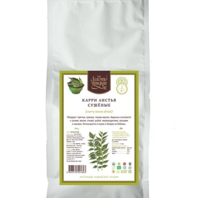 Карри листья - это пряные листья кустарника Murraya koenigii. Внешне немного похожи на лавровые, имеют приятный аромат с оттенками шалфея, петрушки и красного перца, хорошо возбуждающий аппетит. Наименование карри принадлежит британцам: именно они назвали эти листья curry leaf, так как были убеждены, что индийские повара именно их кладут в свои секретные пряные смеси «карри». Индийцы называют эти листья «кари-патта», «кари-пхулиа», «митха-ним» или просто «ним» и часто обжаривают их в «ги» (топленом масле из молока буйволицы), пока они не станут хрустящими, а затем вынимают и используют масло, спитавшее чудесный аромат карри. Родина - Индия. Произрастает Мурайя в Юго-Западной Азии. Лечебные свойства Издавна ценится за свои лечебные свойства. Его кора и листья - едва ли не лучший в мире природный антисептик: ему нет равных по способности очищать кровь и удалять из организма вредные вещества и токсины.