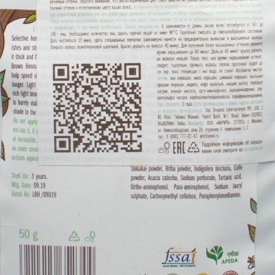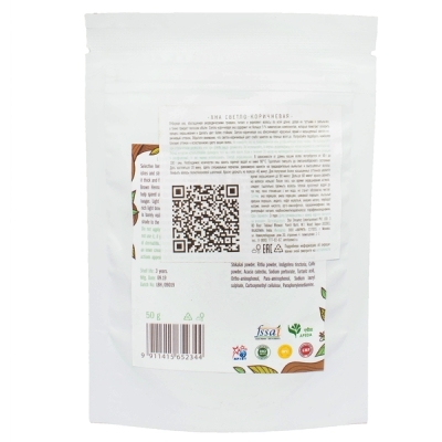 Светло-коричневая хна обеспечивает яркий и насыщенный орехово-каштановый оттенок, оказывает лечебное и ухаживающее действие за счет растительных компонентов.
