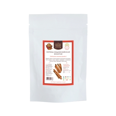 Корица молотая (Cinnamon Powder) Золото Индии, 1 кг Корица (коричное дерево) - средство от простуды, в аюрведе применяется как природный антибиотик. Латинское название: Cinnamomum burmannii. Английское название: Cinnamon. Синонимы: Индонезийская корица. Народное название: корица. Наша корица произрастает в Индонезии. Это - наиболее близкий вид к корице со Шри Ланка Cinnamomum zeylanicum. Корица с острова Шри Ланка отличается очень высокой стоимостью, а индонезийская корица из-за больших объемов выращивания стоит гораздо дешевле, не теряя при этом высокого качества и полезных свойств. Посмотрите краткое различие на русском языке о разных видах корицы: Действующие вещества: эфирное масло с коричным альдегидом, которого в хорошем лекарственном сырье должно содержаться не менее 1%, слизь и дубильные вещества.