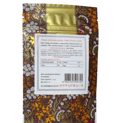 Состав : Молотая цейлонская корица (Cinnamon Verum).