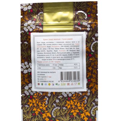 Полезные свойства : стабилизирует нервную систему, улучшает работу ЖКТ, имеет легкое мочегонное действием, улучшает состояние органов зрения и наружных кожных покровов. Кумин стимулирует умственную работу, обладает антисептическими свойствами, признанный природный афродизиак. Эффективен в профилактике простудных заболеваний. Все специи Золото Индии - 100 % натуральные, без примесей и добавок.