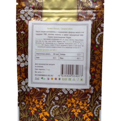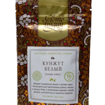 Полезные свойства : нормализует холестерин, показан в профилактике мастопатии, тромбов и новообразований; благотворно влияет на стенки сосудов, состояние поджелудочной железы, печени; улучшает обмен веществ; признанный афродизиак. Кунжут богат кальцием, железом и витаминами А, Е, С. Все специи Золото Индии - 100 % натуральные, без примесей и добавок.