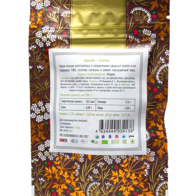 Полезные свойства : улучшает работу желчного пузыря и печени, имеет антибактериальный и антиаллергенный эффект, обладает хорошими противовоспалительными свойствами, стимулирует образование эритроцитов в крови, помогает при кишечных инфекциях. Все специи Золото Индии - 100 % натуральные, без примесей и добавок.