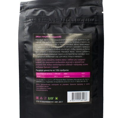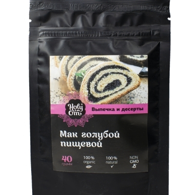 Маковые зёрна «Холи Ом»—это незаменимая приправа для выпечки и десертов. Мак добавляют как начинку в штрудели, рулеты, печенье и пироги, им посыпают сверху булочки и торты, а ещё маковые зёрна замешивают в пудинги и тесто для придания им мягкого орехового привкуса. Мак можно добавить в кефир или йогурт, чтобы сделать их более ароматными и питательными.
