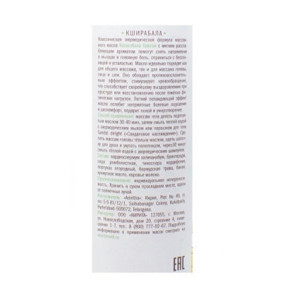 Масло массажное Кширабала, 150 мл Кширабала тайлам - классическая аюрведическая формула массажного масла с расслабляющим действием и мягким ароматом. Эффективно для снятия напряжения, усталости и головных болей, рекомендуется использовать при бессоннице.