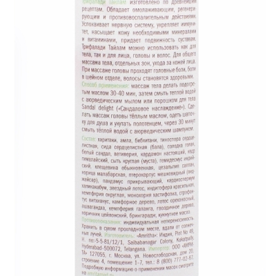 Трифалади Тайлам обладает противовоспалительным, регенерирующим, расслабляющим, омолаживающим действиями.