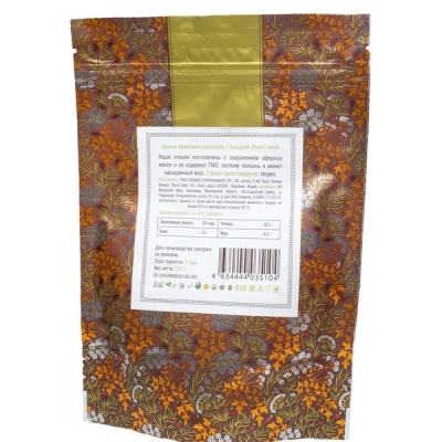 Способ использования : специя с легким ореховым ароматом и пикантной горчинкой добавляется в соусы и подливы. Также пряность прекрасно сочетается с блюдами, приготовленными из овощей, мяса и птицы. Нередко пажитник используется при выпечке пресного хлеба, печений и коржей.