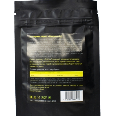 Совет : Приправу «Перец «Лимонный» можно использовать как в качестве маринада для рыбы перед запеканием, так и непосредственно перед употреблением блюда для усиления аромата и вкуса.