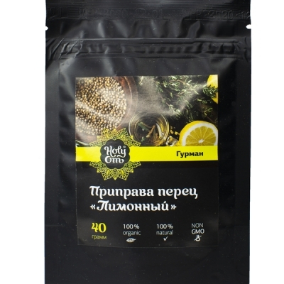 Перец лимонный Holy Om 40 г (Гурман) Приправа «Холи Ом» «Перец «Лимонный»—это восхитительная освежающая приправа, которая идеально сочетается с разными сортами рыбы.
