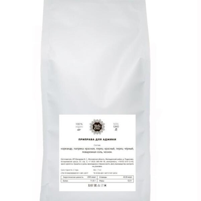Приправа для аджики «Холи Ом» - это жгучая смесь специй с чудесным ароматом и вкусом. Кумин, кориандр, чёрный перец, чеснок и знаменитая композиция «хмели-сунели» в составе приправы отвечают за традиционный вкус и классический аромат аджики, а корица и гвоздика способствуют нормализации пищеварения, повышают аппетит и улучшают обмен веществ.