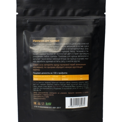 Способ использования : Приправа отлично гармонирует с блюдами, приготовленными из куриного мяса. Компоненты специи придают мясу нежность и остроту, аппетитный аромат с ореховыми нотами и мягкость.