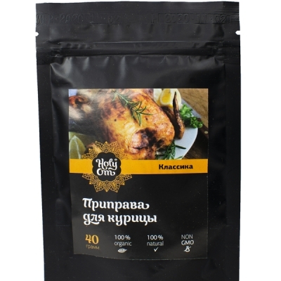 Предлагаем купить приправу для курицы Holy Om. Универсальная специя расфасована в пакеты на фольгированной основе. Практичная тара сохраняет свежесть, вкус и изысканный аромат натурального полезного для здоровья продукта.