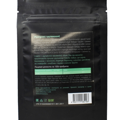 Грузинская кухня славится своими несравненными душистыми травами, которые делают традиционные блюда Грузии такими вкусными! Приправа грузинская «Холи Ом» собрала в себе самые лучшие ароматы и вкусы. Пажитник придаёт блюду нежно-ореховый вкус, базилик добавляет горькую перечную нотку, красный перец—жгучесть и остроту, а сельдерей и петрушка—свежесть.