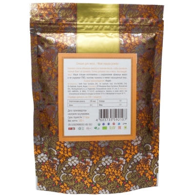 Состав : кRed Chilli (перец чили), Coriander seed (кориандр зерно), Cumin seed (кумин зира семена), Black Pepper (перец черный), Cinnamon stick (корица палочки), Black Cardamon (кардамон черный), Сlove (гвоздика), Bay leaves (лавровый лист), Rock Salt (соль), Turmeric (куркума), Garlic (чеснок), Fennel seed (фенхель семена), Star Anis (бадьян ), Mustard Yellow (горчица желтая), Ginger (имбирь), Onion Powder (лук сушеный молотый), Nutmeg (мускатный орех).Все специи Золото Индии - 100 % натуральные, без примесей и добавок.