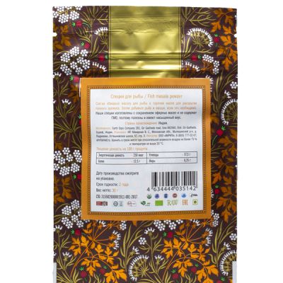 Способ использования : Классическая смесь для морепродуктов прекрасно сочетается с рыбой различных сортов. Рекомендуем добавлять приправу в начале приготовления, чтобы в полной мере передать блюду букет ароматов и вкусов каждого компонента масалы.