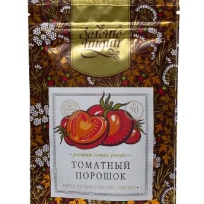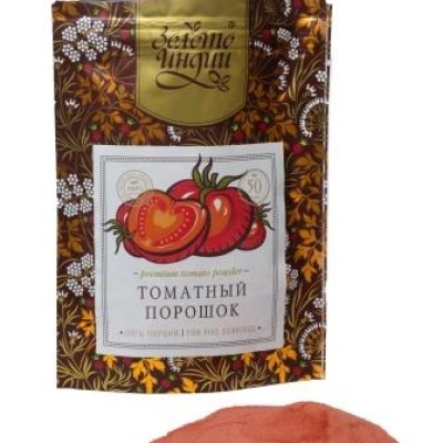 Сок плодов томата в виде порошка. Томатный порошок сохраняет все свойства свежих томатов благодаря способу обработки: мякоть очищенных спелых плодов проходит стадию распылительной сушки в потоке мальтодекстрина, в итоге образуется мелкодисперсный порошок. Он имеет яркий кирпичный оттенок и окрашивает блюда в красный цвет. Обладает пряным ароматом и кисло-сладким вкусом. Этот порошок хорошо набухает в воде, поэтому всего 2 ч.л. приправы способны придать насыщенный цвет и вкус блюду. Порошок можно разбавить с водой, чтобы получить пасту или сок, можно смешать со специями или использовать как самостоятельную приправу. Томатный порошок добавляют в соусы, блюда из макарон, картошки и бобовых, супы и овощные зажарки. Сухим порошком можно присыпать салаты, закуски, бутерброды или второе блюдо перед подачей на стол для украшения. Приобретайте томатный порошок на нашем сайте.