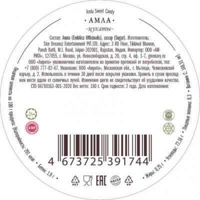 Цукаты Амлы (Amla sweet candy) в банке 180 г